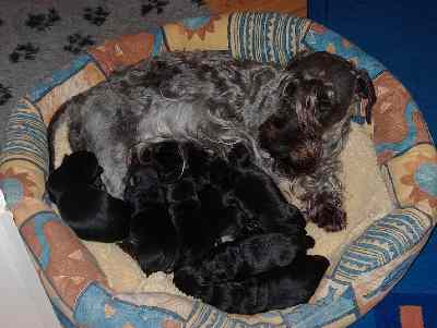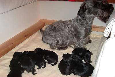 | Ronja, ist aus unserer Zucht und wir freuen uns mit ihren Besitzern, über diesen geglückten Wurf. Familie Baklarz sind die Besitzer von Ronja. Interessenten melden sich bitte unter der Telefonnummer 09776/9329 | ||||